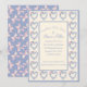 Baksidan av inbjudan har rosa och blå koordinerade slingor och hjärtan.