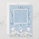 Vacker gammaldags blå akvarellram med eleganta typsnitt med detaljer om ditt evenemang. Blandade vildblomsterbuketter längst ner i denna design med björn, elefant och lammhop för att avsluta denna söta barnkalasinbjudan. Så söt för pojke- eller flickbarnskalas. Andra produkter finns tillgängliga. 100% kundnöjdhet med ”Zazzle”