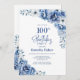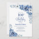 Blå Blommigt 100:e Födelsedagsfesten Inbjudningar