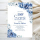 Blå Blommigt - 100:e Födelsedagsfesten Inbjudningar
