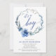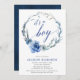 Blå blommigt-babydusch, elegant av krans av kronan inbjudningar