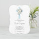 Blå blommigt Baptism pojkinbjudan Inbjudningar
