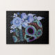 Blå Blommigt Black Sugar Skull Day of the dead Pussel