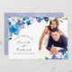 Elegant-pastellskuggor av bröllop spara datum-fotokort med blå blommigt som är designade för att snabbt och enkelt kunna anpassas till dina händelsespecifikationer.
