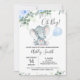 Blå Blommigt Eucalyptus Elephant Baby Shower Inbjudningar