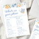Transport dig till en elegant trädgård med vår Elegant Blue Blommigt och Citrus What's on Your Mobilare Möhippa Game Card, ett firande där sofistikering möter den uppfriskande charmen av citrusy-glädje. Den här utformningen är en sömlös blandning av blåblåskärans lugnande nyanser med gultens levande energi för att skapa ambitionen med ren förfining. Den här artikeln innehåller ömtåliga blå blommigtar och vismliknande citroner, med en tekanna som tillför en charm i extra. Gult och blått färg harmoniseras i en elegans som anger perfektens ton för en eftermiddag fylld med te, skratt och skönhet vid rätt tidpunkt. Klicka på knappen "Anpassa" för att ytterligare anpassa mallen. Du kommer att kunna ändra namn, inklusive stil, färg och storlekar. Matchande objekt är tillgängliga.