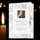 Ett vackert begravningsprogram firande i livet med en handmålad gräns av blå och vilda blommor. Lägg till foton och anpassningsbar på alla fyra sidor - en obituär, serviceordning, dikt, tackmeddelande osv. Det här programmet är så enkelt att anpassa - klicka bara på "anpassa mallen" om du vill ändra text och foton eller klicka på Redigera om du vill anpassa den ytterligare. Detta är verkligen ett engångsprogram som människor kommer att hålla för evigt.