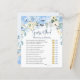 Gissa vem Mamma eller Pappa Baby Shower Game - Den här designen har en vattenfärgsillustration av blått, grått och kräm-peonier och anemoner. Överst på kortet - silver-effektkonfetti.