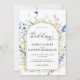 Blå Blommigt Guld alla i 1 QR-kod Bröllop Inbjudningar
