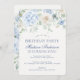 Blå Blommigt Hydrangea Botanisk Födelsedagsfest Inbjudningar
