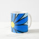 Nära söt handmålad blå daisy med gultens mittblomma som skisserats med svartmålade tillbehör. Kärlek är skrivet i svart skript runt ljusblå mugg. Söt mugg för att brista upp någons dag. Originalgrafiktverk av TamiraZDesign. www.zazzle.com/tamirazdesigns