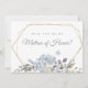 Kommer du att bli min Matron med hedersbevis? Romantiska vattenfärgsdammiga blå blommigtar och löv på guld geometriska ram. Denna elegant moderna botaniska utformning är perfekt för vår och sommar-bröllop.