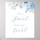 Den här möhippan "Kärlek är Sweet"-dessert poster pub har en vattenfärgsdesign i blommigt gräns med elegant blommor i olika blåa nyanser - perfekt för ett "Nåt blått före mig"-tema.