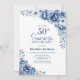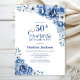 Blå Blommigt - överraskande 50:e Födelsedagsfesten Inbjudningar