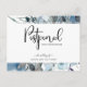 Måste du skjuta upp din Bröllop? Inga problem, låt familj och vänner få veta hur planerna har förändrats med det här eleganten Postponement Postcard. Framsida med exquisite blue water fläckfläckar med handmålad vattenfärgsbakgrund och ord Postponed i modern blommigt skriftlig typografi. Blommor och löv i vitt, dammblått, marinblått, grått och grönt. Tillbaka med området för meddelandet och grund blå vattenfärgsdetaljer. Var vänlig och ändra ditt meddelande till kostym efter dina behov. Förmåga att få meddelande från par till vänner och familj eller från föräldrar till deras gäster. Handskrivna typografidetaljer i baksidan också. Modern elegant romantik. Praktiskt vykort, mindre slösande, mindre krångligt. En del av vår "Rustic Blue Mountains" bröllop och evenemangsinsamling.