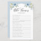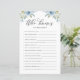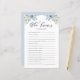 Vem vet bruden bäst? Svara på dessa frågor för att få reda på det! Lägg till den här roligten och det botaniska duschspelkortet till evenemanget. Den har vattenfärgade illustrationer av benvitt och blått ro och peonier med en grön accent. Anpassa genom att lägga till tillbaka text. Den här blommigt-bridtrivia-spelkortet är perfekt för bröllop, födelsedagar, möhippor och babyduschar.