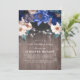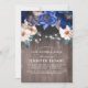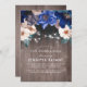 Rustik blommigt födelsedagsfest inbjudan med strängen ljus och marin och royal blåa blommor bouquet