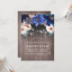 Rustik blommigt inbjudningskort för möhippa med strängen ljus och marin och royal blåa blommor bouquet