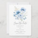 Blåfärgat bröllop spara datum-kort för blommigt. Lätt att ändra texten.