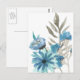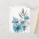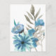 Enkel vattenfärg för blåa blommor och löv på vit bakgrund.