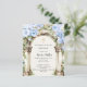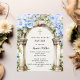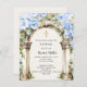 En stor marmorbåge dekorerad med blå blommigtar och ett gyllene kor. Anpassa och lägg till namn och detaljer. 1 lakan = 1 inbjudan tryckt kant till kant.
