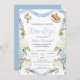 Blue blommigt boybaptism inbjudan på spanska, invitación de Bautizo para niño con flores verdes