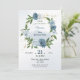 drömsk romantisk blå och vit blommor och gröna blad botanisk krans födelsedagsfest inbjudan