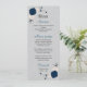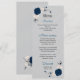 Blå blommor i marinblått silver löv bröllop meny