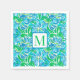 Monogramservetter med ett fantasifullt, prydligt mönster med blå blommor och grönska. Den övergripande designen utstrålar en rolig, livlig stämning som kan lysa upp vilken fest som helst, vilket gör dem perfekta för fester, bröllop eller shower.