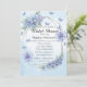 Denna eleganta bröllopsdusch-inbjudan har blå blommor med en touch av rosa och vackra blå fjärilar.