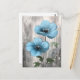 Blå blommor på grå träfärgning vykort