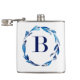 Blå akvarell blomsterbladskrans med monogram bokstav B i mitten. Kan anpassas med ditt namn, speciellt datum eller andra ord du väljer, eller lämnas tom.