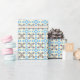 Dekorativt inpackningspapper med ett unikt, handmålat geometriskt blomsterplattmönster i mjuka blå, krämfärgade och djupa plommonfärgade toner. Inspirerad av dekorativa plattor och vintage textilmönster, ger denna design en konstnärlig boutique-känsla till presenter, brevpapper och hantverksprojekt. Perfekt för födelsedagar, högtider, bröllopspresenter och alla som uppskattar förfinad förpackning.