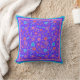 En söt, blommigt dekorativ kudde eller en spridd kudde, med en mönster av ljusa blommor i lila, turkos, rosa och orange på en royal blå bakgrund från en handmålad papper kollage av Judy Adamson. Du kan enkelt ändra bakgrunden färg genom att klicka på Redigera.