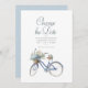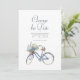 Den här bohemiske inspirerade bröllop förändrar datumkortet med en blå cykel som bär en basket fylld med blåa och vita blommor och ett par vilda fåglar på cykelsadeln. Det är enkelt, sött och elegant och kan lätt vara personlig med informationen. Det är särskilt trevligt för vår eller sommar bröllop. Fyll i utseendet med alternativ för kontorsutrustning och tillbehör i det här temat. Baserat på en ursprunglig vattenfärg av © Lisa Audit Art. Surround you with heartwarming Art.