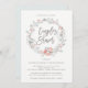 Denna enkla och stilrena inbjudan till parbröllopsdusch har en söt akvarell boho-krans, med trendiga rosa och blå blommor och modern typografi.
