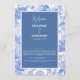 Den här designen har vackra, blå illustrationer av botaniska trädgårdsblommor i vintage. Texten i bröllop är ramad med ett motsvarande blått ram. Den här blåa blommigten skapar en elegant av land trädgårdskåran vid blommigt. Planering av färdprogram för elegant bröllop med modernt inslag. Det finns också möjlighet att matcha bröllopsinbjudningar och andra artiklar i kontorsartiklar.