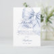 Detta eleganta kort har en charmerande blå bow som är perfekt för en "något blått" bröllopsdusch. Designat i mjuk pastellvattenfärg kombinerar det romantisk handskriven stil med trendiga, lekfulla element. Idealiskt för en dammig blå bröllopsdusch.