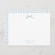 Personlig, söt, handmålad, vattenfärgad blå Bow "från förskolan av" pojke platta tackkort-kort med baby blue och vit gingham bakåt.
