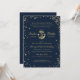 Guldankare och repaccent, elegant marinblå och gul bröllopsinbjudan för en förtrollande bröllopsfest. Stjärnklar natt tropisk destination, strandbröllop eller bröllops kryssning inbjudan set.