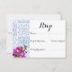 BLÅT BRÖLLOPSINVITATIONSSVARSKORT, BLÅT DESIGN MED ROSA BLOMMOTTIV