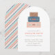 En hög med färgglada resväskor sitter högst upp på denna fantasifulla avskedspartyinbjudan. Under resväskans illustration finns utrymme för hedersgästens namn och festdetaljer. Baksidan av kortet har ett koordinerande diagonalt randmönster. Denna inbjudan är perfekt för alla som är på väg att ge sig ut på ett nytt äventyr!