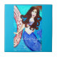 blå brunette-sjöjungfru kakelplatta
