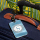 Blå brushed Metall Sparkly Diamonds Monogram Glam Bagagebricka