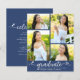 Var stolt, gläd dig och visa upp denna milstolpe för din favoritstudent! Skicka ut denna feminina, fantastiska, enkla, moderna, personliga 4-foto-kollage budgetmeddelandeinbjudan till en händelse att minnas. En rolig och lekfull visuell framställning med vit handskriven text och söta, lekfulla hjärtan, tillsammans med hennes namn, examensår och skola, och 4 bilder efter eget val överlagda på en marinblå bakgrund. Anpassa den anpassade texten med din students namn, skola och examensår på framsidan. På baksidan kan du lägga till din personliga anteckning, nästa skola hon ska gå på, festinformation osv. på den blå bakgrunden. Garanterat att tillföra snygg kul till deras speciella tillfälle!