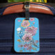 Blått Budgie Blått Blommigt Vattenfärg Bagage Märk Bagagebricka