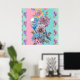 Blå Budgie Fågel Ros Blomma Målning Akvarell Affis Poster