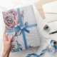 Blå Budgie Ro konstblommor Watercolor Wrapping Presentpapper