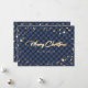 Anpassningsbar blå buffelhäst med julkort med snöflingor och skuggande stjärnor på en svart och blå buffelbaksida. Anpassa enkelt dessa magiska julkort med din familj namn och text.