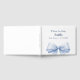 En vit bakgrund färg. Dekorerad med en stor blå bugg. Anpassa och lägg till ditt namn, din text. Titel: Önskemål för Baby